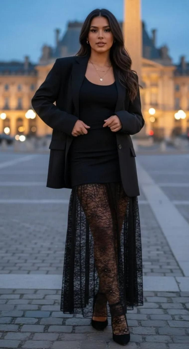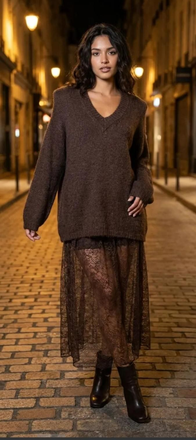 Jupe fluide en tissu stretch, dotée d'une taille élastiquée. Finition en dentelle légère pour un effet romantique. Idéale pour les occasions décontractées ou habillées.