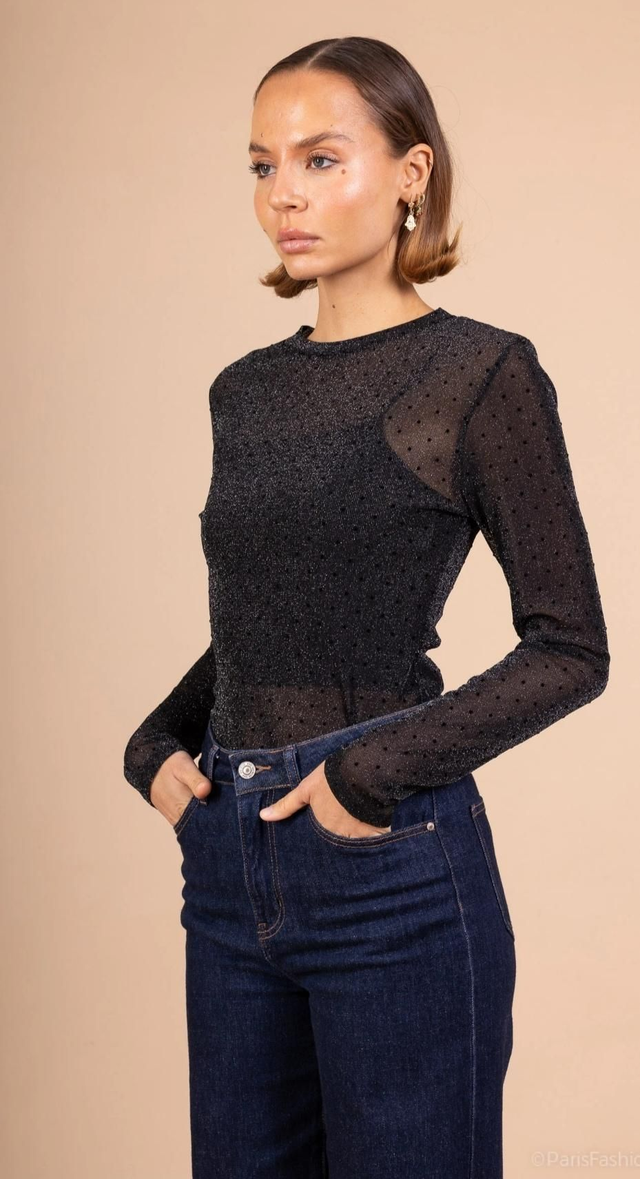 Ce bodysuit élégant arbore un effet velours flocking, avec des manches longues et un col rond. Sa coupe ajustée met en valeur la silhouette, tout en offrant un confort optimal.